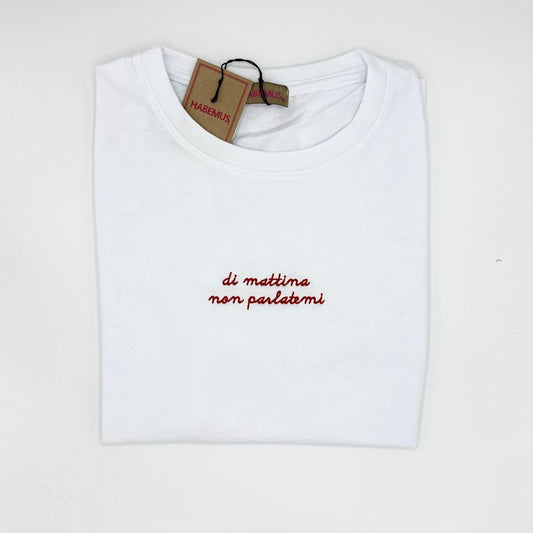 T-shirt Donna Ricamata " di mattina non parlatemi "