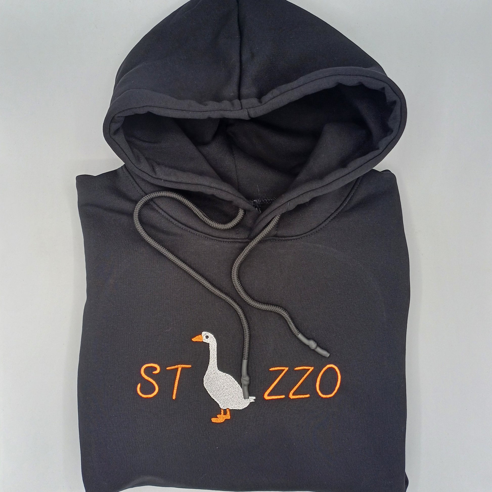 This hoodie combines comfort and style in one piece. Made from high-quality materials, it offers a soft and warm feel, ideal for any season. The "St🦆zzo" embroidery adds a touch of irony and originality, perfect for those who love to stand out with a touch of humor.
