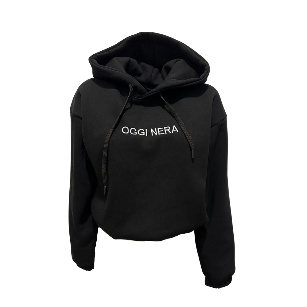 Felpa Crop Donna con Cappuccio "OGGI NERA" – Ricamo centrale