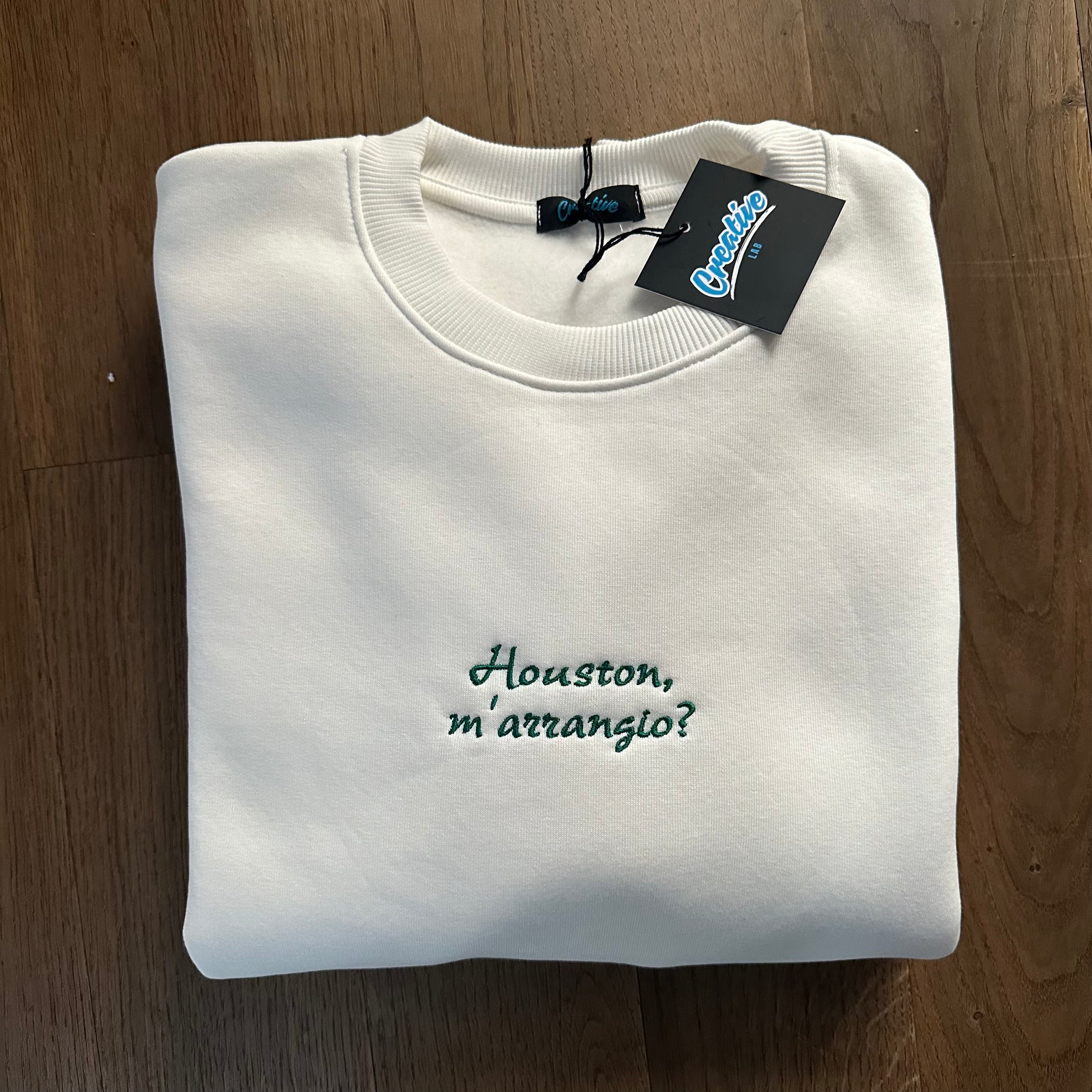 🧵 Ricamo centrale: Frase fissa "Houston, m’arrangio?" ricamata con filo di alta qualità, anche in versione fluo